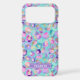 Customise this aqua iridescent leopard print iPhone 17 pro max case with your your name in a trendy modern CAP font in white on light purple. It's so chic!