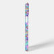 Customize this aqua iridescent leopard print iPhone 15 plus case with your your name in a trendy modern CAP font in white on light purple. It's so chic!