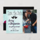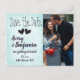 Cute aquamarine and black wedding save the date card card with magenta pansies on the back is beautifully coordinated with invitations, return-address labels, and party favors. Select other sizes. Wedding announcements perfect for any turquoise, aqua, Bahama blue theme colors. Easily customize this design for your graduation, Quinceanera, or Bat Mitzvah celebration!