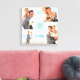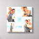Aqua Modern Grid Monogram Wedding 4 Photo Collage Canvas Print
