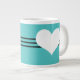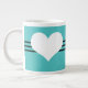 Sweet and charming Modern Heart Speciality Mug featuring a turquoise background and a cute heart and striped border. This cute and girly mug is perfect for enjoying your favourite hot beverage! Customise with the text of your choosing. Click on "Customise" to find additional personalisation options.
