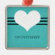 Sweet and charming Modern Heart Ornament featuring a turquoise background and a cute heart and striped border. This cute and girly ornament will add style any decor! Customise with the text of your choosing. Click on "Customise" to find additional personalisation options.