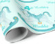 Aqua named rocking horse 4th birthday pattern wrap wrapping paper