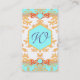 Aqua, Orange and Gold Damask Elegant Chic Business Card