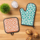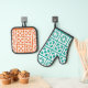 Aqua + orange Breeze Blocks, Oven Mitt / Hot Pot Oven Mitt & Pot Holder Set
