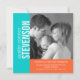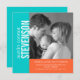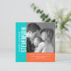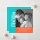 Aqua Blue and Orange Modern Baby Boy Birth Announcement Flat Card Template with photo. Fully customisable. Use the prompts to replace the sample photo with your own baby photograph and birth announcement details and your baby's name. Select "customise it" to change the colours of the text and background of the front and the back of the card. Design by Elke Clarke ©. This bold simple design is perfect for parents who would like a clean modern look to their birth announcements.