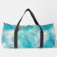 "aqua palm fronds bag", "tropical palm leaves duffel", "beach getaway travel bag", "vacation tropical duffel bag",