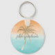 Aqua Peach Gold Tropical Palm Trees Ombre Key Ring