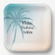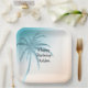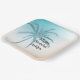 Aqua Peach White Palm Tree Birthday Paper Plate
