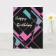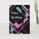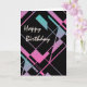 Aqua Pink Black Diagonal Abstract Design Birthday Card