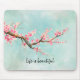 Aqua Pink Cherry Blossom Floral Mouse Pad