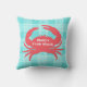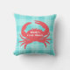 Aqua Plaid and Coral Crab Outdoor Pillow