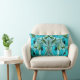 This all over pattern floral throw pillow features aqua poppies and a twisting green vine.