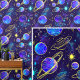 Aqua Purple Gold Planet in Dark Blue Sky Wallpaper