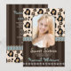 Add your photo to these sweet and fancy formal leopard print sweet sixteen invitations with a leopard spot background, subtle stripes and a printed rhinestone diamond and ribbon look design in light blue aqua, cream, brushed gold and bronze and dark brown hues. PLEASE, NOTE: no three dimensional embellishments have been added to this flat 16TH BIRTHDAY invite and card. Artwork © Chrissy H. Studios, LLC. All Rights Reserved.