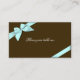 Light aqua ribbon on chocolate brown background. Fully customisable guest table place card to use for weddings, parties, bridal shower, engagement and any other special occasions.