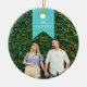Personalise this elegant ceramic ornament with a photo on each side to commemorate a special year. Customise the front with your family name in white on a vibrant turquoise teal ribbon banner, and add the year to the back.