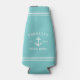 These cool personalised beach house bottle coolers feature your family name on a turquoise aqua background, with your year established and a nautical anchor illustration. Rope stripe detailing at the top and bottom completes the design for a rustic look.