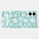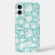 Customise this aqua shell pattern iPhone 16 plus case with your your name in a trendy modern CAP font in aqua on white. It's so modern and beachy!