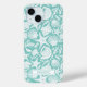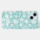 Customize this aqua shell pattern iPhone 15 case with your your name in a trendy modern CAP font in aqua on white. It's so modern and beachy!