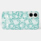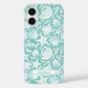 Customize this aqua shell pattern iPhone 16 case with your your name in a trendy modern CAP font in aqua on white. It's so modern and beachy!