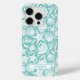 Customize this aqua shell pattern iPhone 15 pro case with your your name in a trendy modern CAP font in aqua on white. It's so modern and beachy!