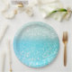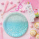 Aqua Silver Beach Blue Summer Glitter Gradient Paper Plate