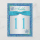 This glittery festive aqua blue, green, and silver grey table number postcard has a turquoise blue PRINTED ribbon with FAUX glitter (PRINTED) snow flakes on it that matches the winter Quniceanera party invitation shown below. ***You MUST change the number 11 to each number that you need, add it to your cart, and then come back and repeat the process with each number that you need. Quantity discounts may apply once you add all the items to your cart. If you have any questions or change requests contact niteowlstudio@gmail.com.