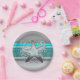 Aqua & Silver Starfish Beach Party Reception Plates. Customise with any text. Matching items are available.