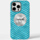 Aqua Silver Zigzag Stripes Monogram Case-Mate iPhone Case