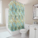 Aqua Sky Green Gold Tropical Leaves Shower Curtain
