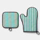 Aqua Stripes Oven Mitt & Pot Holder Set