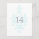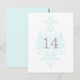 Modern with chic elegance describes this sophisticated Subtle Damask Wedding Table Number Postcard with a light turquoise damask flourish background. This classic table card is perfect for a traditional wedding and can be easily customised with a table number(s) or your wedding details. For more customisation options, click on the Customise It button.