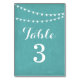 Aqua Summer String Light Wedding Table Numbers