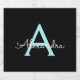 Black and Aqua Blue Teal Simple Script Monogram Name Beer Bottle Label. This makes the perfect sweet 16 birthday, wedding, bridal shower, anniversary, baby shower or bachelorette party gift for someone that loves glam luxury and chic styles.