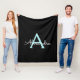 Aqua Teal Blue Script Girly Monogram Name Fleece Blanket