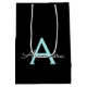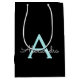 Aqua Teal Blue Script Girly Monogram Name Medium Gift Bag