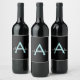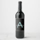 Aqua Teal Blue Script Girly Monogram Name Wine Label