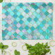 Aqua Teal Gold Oriental Moroccan Tile pattern Tea Towel