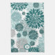 Aqua Teal Grey Flower Pattern Monogram Tea Towel