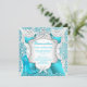 Aqua Teal Blue Princess Quinceanera, Pearl diamond Tiara, 15th Birthday Party. Pretty Blue Lace Quinceanera. With Aqua Teal Blue Diamond High Heel Shoes and White Silk Satin Curtains Drapes, white pearl bows. Glitter White and Light Aqua Teal Blue, Floral Silver Tiara. Pink Lace floral frame. Princess mis quince Party for a teen girl. Invitation can be used for any event invitation Customise to change or add details. All Occasions Fabulous Elegant Events for Girls, Party Invites for all ages, just customise to the age you want! Affordable, Cheap but classy! Zizzago created this design PLEASE NOTE all images are NOT Silk Diamonds Jewels or real Bows!!