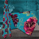 An aqua teal blue merlot burgundy red jewel tone wedding neck tie, matching the invitation by the same name, featuring a symphony of pinkish bordeaux raspberry burgundy red peonies embellished with gold spray and shimmering gold outlines around a medium teal aqua blue background