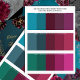 Three teal blue, emerald green with burgundy jewel tone wedding colour palettes for wedding dress, decor and invitations. Three separate colour palettes range from aqua teal blue and emerald green with burgundy garnet red pink fuchsia on one card that you can carry with you making it easy to compare colours and master colour flow and continuity when selecting your materials and supplies for your wedding.