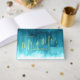 Aqua teal fading to white modern loose brush painted art Mr & Mrs little heart in gold foil guest book for weddings and anniversary events. Personalise with your own names message or events. Original abstract modern art and design by Sarah Trett. www.sarahtrett.com for www.mylittleedenweddings.com