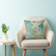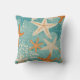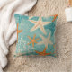 Aqua Teal Starfish Beach Seashell Pattern Cushion