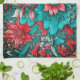 Aqua, Teal, Turquoise and Grey Floral Pattern Tea Towel