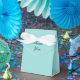 An elegant aqua colour scheme decorates this Thank You favour box. This favour box is great for a bridal shower, wedding, reception, etc.... The design is from original art.