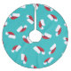 Aqua Turquoise Bright Blue & Red Santa Hats Brushed Polyester Tree Skirt