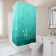 Aqua Turquoise Gradient Geometric Mesh Monogram Shower Curtain