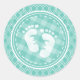 Aqua Turquoise Retro Baby Feet Baby Shower Classic Round Sticker